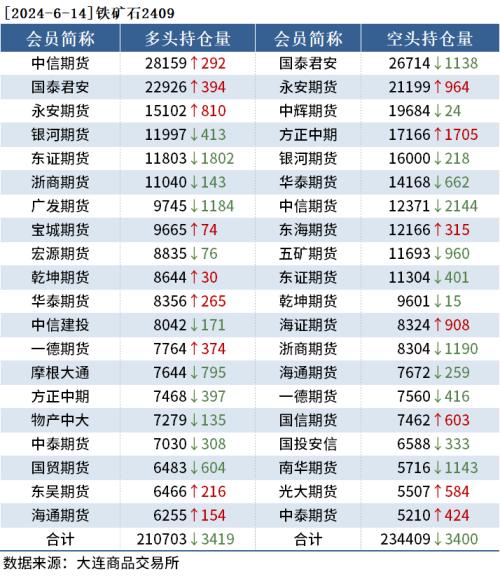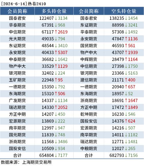 截至6月14日收盘,螺纹钢2410收3637元/吨,涨0.72%;热卷2410收3806元/吨,涨0.74%;铁矿石2409收827.5元/吨,涨1.97%。