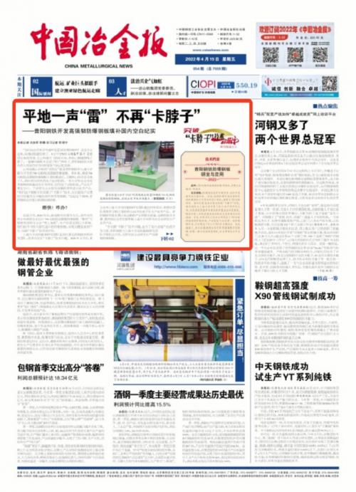 “为突破‘卡脖子’技术问题,也为了加大高端产品的开发力度,普阳钢铁与上海大学高性能钢研发团队开展校企合作,共同为该企业研发生产高强韧防爆钢板。