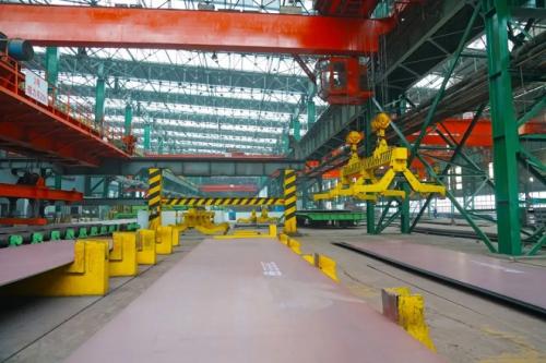 正在吊运的普阳钢铁集团高强韧防爆钢板