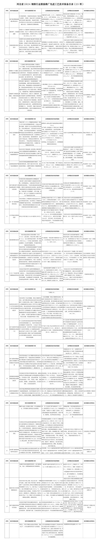 为贯彻落实国务院《推动大规模设备更新和消费品以旧换新行动方案》和河北省委、省政府工作部署,加快推动河北省钢铁行业技术装备高端化升级改造,激发高质量发展新动能,经河北省工业和信息化厅广泛征集、审慎筛选,编制了《河北省2024年钢铁行业先进工艺技术装备推荐目录》。