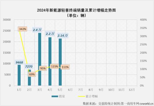 2024年以来,尤其是自3月份起,我国新能源轻客市场表现出持续向好的发展趋势,3月份和4月份同比增幅分别达到118%和167%,销量保持2万辆以上高位水准。