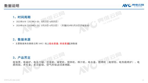 从数据端来看,奥维云网(AVC)监测数据显示,2024年“618”(2024W21-25:5月20日-6月23日),厨房小家电(电饭煲、电磁炉、电压力锅、豆浆机、破壁机、搅拌机、榨汁机、电水壶、煎烤机、电蒸锅、电炖锅、养生壶、空气炸锅)全品类线上渠道(传统+抖音)零售额规模为32.8亿元,同比下降10.3%;传统渠道市场规模24.8亿元,同比下降15.8%;抖音渠道8亿元,同比提升11.9%。本次大促在厨房小家电行业展现以下几个特点: