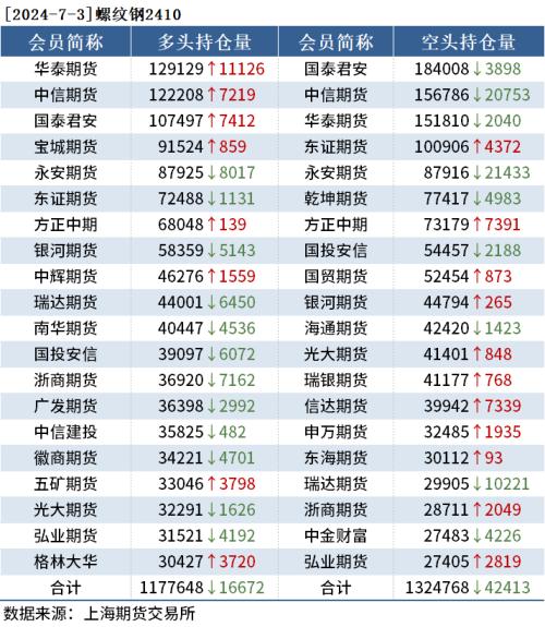 截至7月3日收盘,螺纹钢2410收3619元/吨,涨1.49%;热卷2410收3809元/吨,涨1.20%;铁矿石2409收864.0元/吨,涨2.55%。