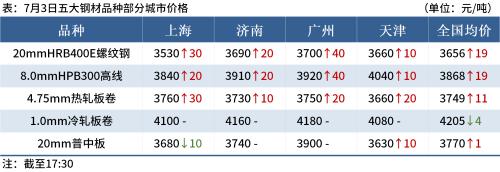 ◎7月3日,唐山迁安普方坯资源出厂含税累计上调40,报3350元/吨。