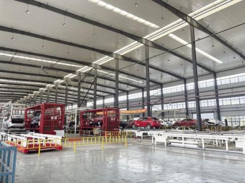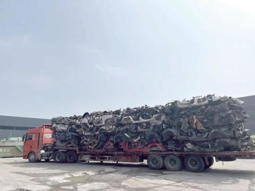 浙江一辆满载报废汽车的运输车辆正在驶入加工场地