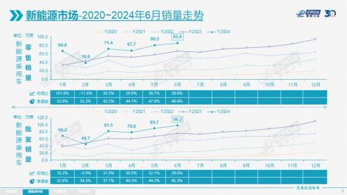6月新能源车市场零售85.6万辆,同比增长28.6%,环比增长6.4%。2024年1-6月零售411.1万辆,同比增长33.1%。
