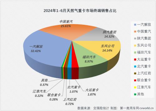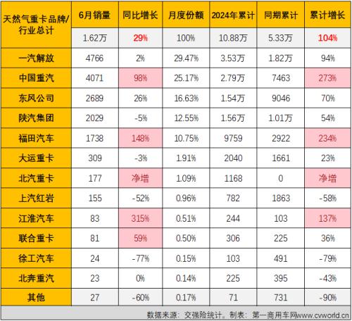 6月份,新能源重卡延续了前几月翻倍增长的火热态势,天然气重卡市场的表现又是如何呢?2024年半程走完,天然气重卡市场有哪些亮点和变化?哪些企业表现更为突出?