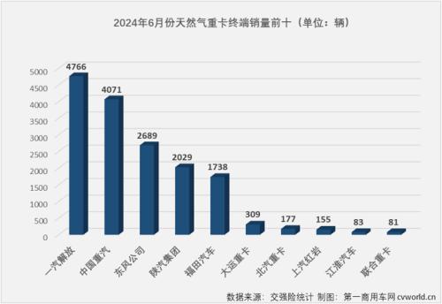 2024年6月国内天然气重卡终端销量排行榜(单位:辆)