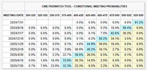 “美联储观察”工具显示,目前市场更倾向于该行在9月份采取“首次降息”,在7月30日至31日的会议上更可能是“按兵不动”。高盛认为,如果通胀数据出现反弹,会导致9月“首降”的行动难以解释。