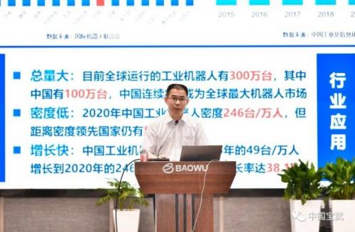 集团各子公司是万名宝罗上岗计划的落实主体,都在抓紧为宝罗上岗提供场景和岗位。在智慧制造“四个一律”推进以来,各家单位的机器人应用取得了显著进步,一些子公司的机器人应用密度快速提升。宝钢股份、马钢集团、太钢集团、宝钢金属作为优秀实践单位在会上进行分享发言。