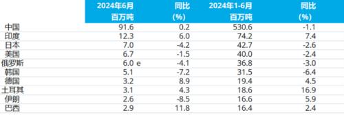 2024年6月全球71个纳入世界钢铁协会统计国家的粗钢产量为1.614亿吨,同比提高0.5%。