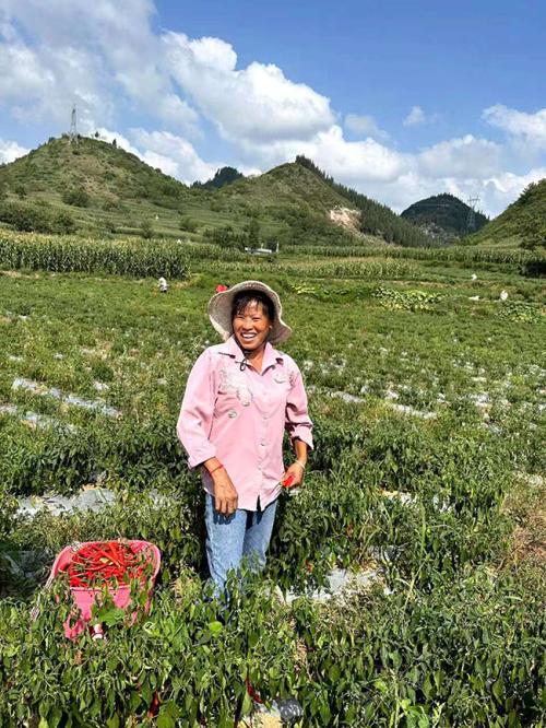 10月23日,贵州省六盘水市盘州市刘官街道三角田村村民沉浸在收获辣椒的喜悦之中(如图)。三角田村属卡斯特地貌,多山石少田土。过去,由于土地资源的限制,其农业生产效益不高。近年来,鞍钢集团攀钢通过实施一系列帮扶项目,在示范基地种植辣椒200亩,亩产辣椒可达1000余公斤,总产值约120万元,比传统种植玉米每亩增收3000元,不仅优化了该村的产业结构,还显著提升了村民的收入水平。