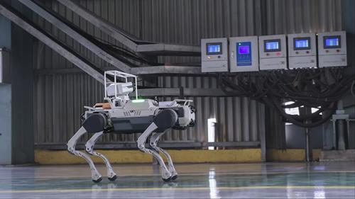 7月20日,一个名为“宁小铁”的四足机器人正迈着稳健的步伐在杭钢集团宁波钢铁高炉区域穿梭,它是这里最新上岗的“巡检哨兵”(如图)。该机器人是宁波钢铁联合杭州“六小龙”之一的杭州云深处科技有限公司打造的首个以高炉风口平台为核心应用场景的智能巡检四足机器人。该机器人通过激光反射定位技术,可实现7×24小时的不间断值守,彻底消除人工巡检可能出现的疲劳盲区。此外,“宁小铁”借助其搭载的32位双核5G模块和厂区室内外全覆盖的5G专网,能将感知数据实现毫秒级回传,通过深度学习算法对这些数据进行分析处理,将传统依赖经验判断的巡检,升级为可量化、可追溯的数字诊断,成功构建了“感知—传输—分析—决策”的全链路技术体系。
