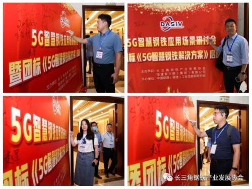 三钢(集团)公司副总经理/总工程师黄标彩、上海华为技术公司5G产品线副总裁徐之兵、中国联通(福建)工业互联网研究院副院长李捷、宝武集团上海宝信软件股份公司技术总监丛力群、中冶赛迪信息技术(重庆)有限公司副总裁李强、长三角钢铁产业发展协会秘书长包忠峰共同为《5G智慧钢铁解决方案》团体标准启动仪式揭牌。