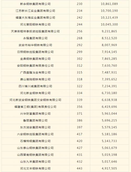 其中,多家黑色冶金企业入榜,具体情况整理如下——