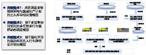 (b)为提高库区多种物流设备协同运行效率,研发了多车、多物流设备协同动态调度模型,多车负载均衡率提高30%。
