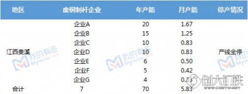 除废铜制杆企业外,当地部分涉及粗铜冶炼企业已经停产,江铜贵溪铜冶炼厂生产正常,并未受到环保督察影响。江西其余地区尚无明令限制生产情况,暂无影响。