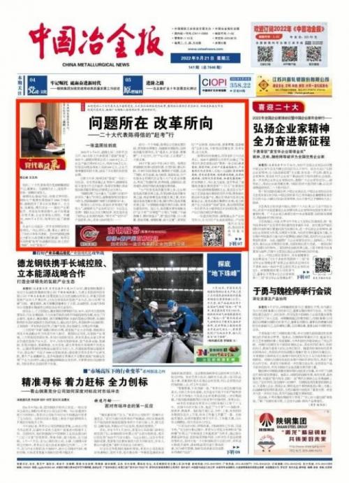 党的二十大召开在即,万众期盼。喜迎盛事,《中国冶金报》特推出《党的二十大代表风采》栏目,讲述来自钢铁冶金行业的党的二十大代表矢志不渝跟党走、立足岗位砥砺奋进的故事,展现他们履职尽责显担当、积极进取奋发作为的党的二十大代表风采,激励广大钢铁人奋进新征程,建功新时代。