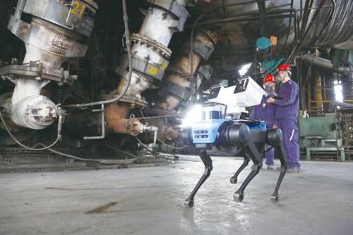 8月10日,在柳钢炼铁厂2号炉热风炉平台上,一条名叫“飞流”的机器狗,迈着矫健的步伐,在热风炉高温环境下来回穿梭进行热风炉巡检(如图)。据悉,该机器狗由柳钢炼铁厂自动化室自主研发,它搭载了16线激光雷达、热成像双光谱云台、深度相机等智能传感设备,能够将收集的热风炉信息经过整理、筛选、分析后实时传输到巡检监控平台,帮助操作人员进行设备故障识别和异常预警,有效实现对热风炉的数字化、智能化监控管理。(阎翔/文包滨/摄)