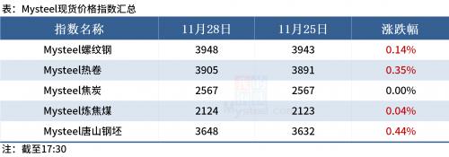 ◎11月28日,全国174家长、短流程代表钢厂废钢库存总量356.1万吨,较上周五降0.96万吨,降0.27%;库存周转天10.3天,较上周五降0.4天;日消耗总量30.77万吨,较上周五降1.18%;日到货总量30.6万吨,较上周五降5.89%。