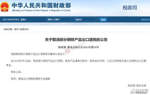 税率的调整只是影响了出口成本,既不影响供应也不影响需求。然而螺纹、热卷的价格由供需关系决定,而不是成本。因此出口退税的影响仅仅体现在短期情绪上,过几天就像风一样吹过。出口退税政策的出台,一为了尽可能留下铁元素在国内,二来转移铁矿等大宗商品的输入型通胀。
