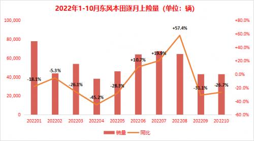 12月5日,本田中国数据显示,11月本田在华终端销量78,126辆,同比下滑42.84%。其中,广汽本田销量45,512辆,同比下滑34.17%;东风本田32,614辆,同比下滑51.72%。