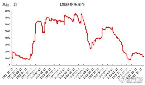 截止5月6日,LME锡期货库存1290吨,保持较低水平运行,对价格存在一定支撑。