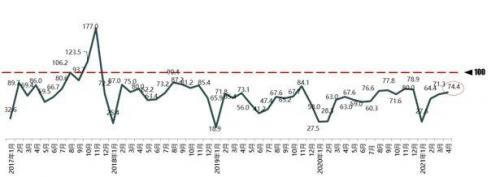 2021年5月6日,中国汽车流通协会发布最新一期“汽车消费指数”:4月份汽车消费指数为74.4,预计5月汽车销量继续回升,市场表现平稳。