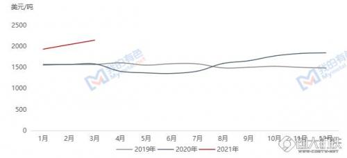 Mysteel预测2021年4月中国铜精矿进口量环比减少23%左右。陆运矿方面,因蒙古疫情蒙古矿进口量减少;海运矿方面,北方部分冶炼厂检修,原定4月到港的船只推迟到5月份;南方部分地区铜精矿清关推迟至5月份;同时,今年3月份中国铜精矿进口量大幅增加。