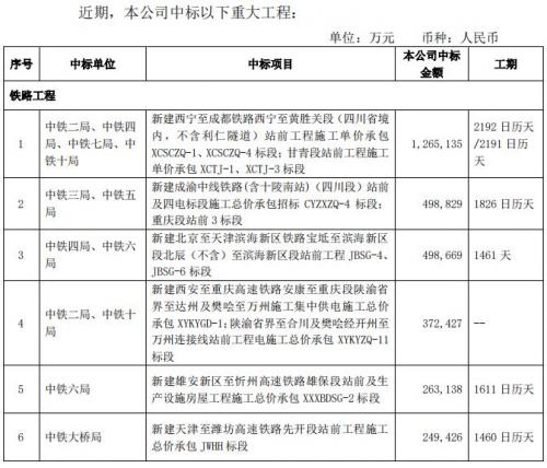 12月15日,中国中铁发布公告,公司近期工程中标价合计约589.28亿元,约占本公司中国会计准则下2021年营业收入的5.51%。