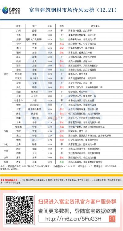 成都钢铁网资讯12月22日消息: