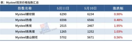 ◎ 5月11日,河钢集团对焦炭采购价上调100元/吨。