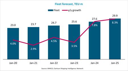 船队规模预计于2022年上升3.5%,于2023年上升7.8%并于2024年上升8.3%