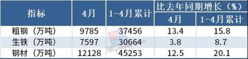 国家统计局数据显示,2021年4月份,我国粗钢日均产量326.2万吨,生铁日均产量253.2万吨,钢材日均产量404.3万吨。