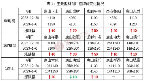 据2023年1月6日对上海市场型材仓库进行的同口径调查统计显示,工角槽钢库存6.05万吨,较上周增加0.24万吨。H型钢库存5.77万吨,较上周增加0.20万吨。