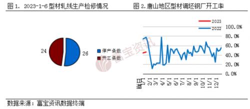 唐山型钢厂开工率:1月6日统计34家钢厂52条产线开工24条,较上周增1条,开工率为46.15%,较上周统计升1.92%。