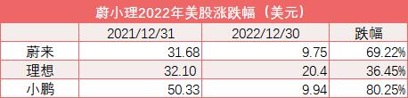 然而,登陆资本市场或许只是站上了另一条起跑线。今年以来,以特斯拉为首的新能源车企在股市的大幅跳水,而资本市场对于造车新势力的热度也正在退去。在美股上,理想汽车从2021年12月31股价32.10美元跌至2022年12月30的20.40元,跌幅36.45%;小鹏汽车从50.33美元跌至9.94美元,跌幅80.25%;蔚来从31.68美元跌至9.75美元,跌幅69.22%。