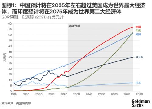 通过采用新数据和新方法,高盛经济学家的研究标的覆盖104个经济体,2035年中国将超越美国成世界最大经济体,2075年印度再次超越美国跃升为世界第二。