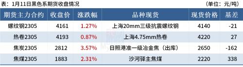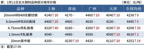 ◎ 1月11日,江苏沙钢出台1月中旬出厂价,螺纹钢、普线、盘螺均上调50,现螺纹钢4200、高线4410、盘螺4500。