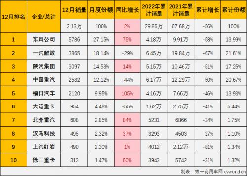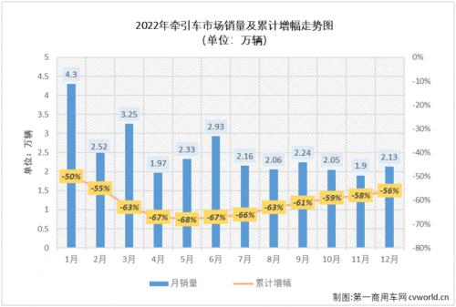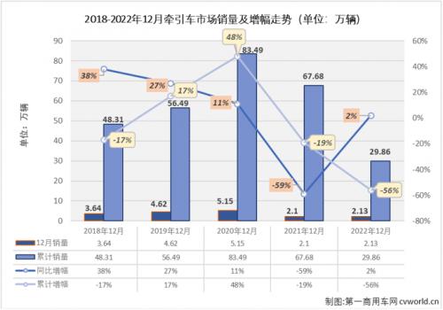现在,12月份的“答卷”来了,终于增长了一次!面对2021年同期仅2.1万辆的“软柿子”,12月份的牵引车市场终于收获了2022年的首次“胜利”。