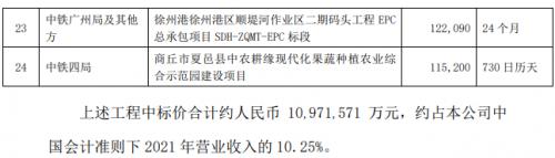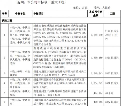 1月16日,中国中铁发布公告称,近期,公司中标多个重大工程,工程中标价合计约1097.1571亿元,约占公司中国会计准则下2021年营业收入的10.25%。