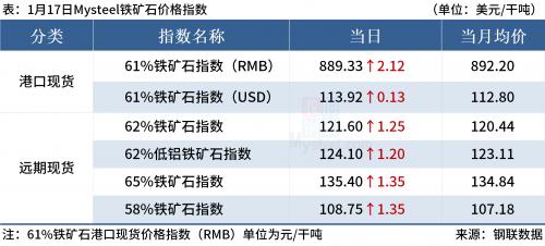 ◎1月17日,全国主港铁矿石成交78.50万吨,环比减18.7%