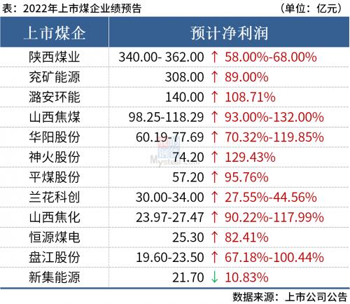 据Mysteel不完全统计,截至1月28日,已有12家上市煤企公布2022年业绩预告。其中,潞安环能、神火股份、山西焦煤、华阳股份、山西焦化和盘江股份等6家企业预计实现净利润翻倍增长。