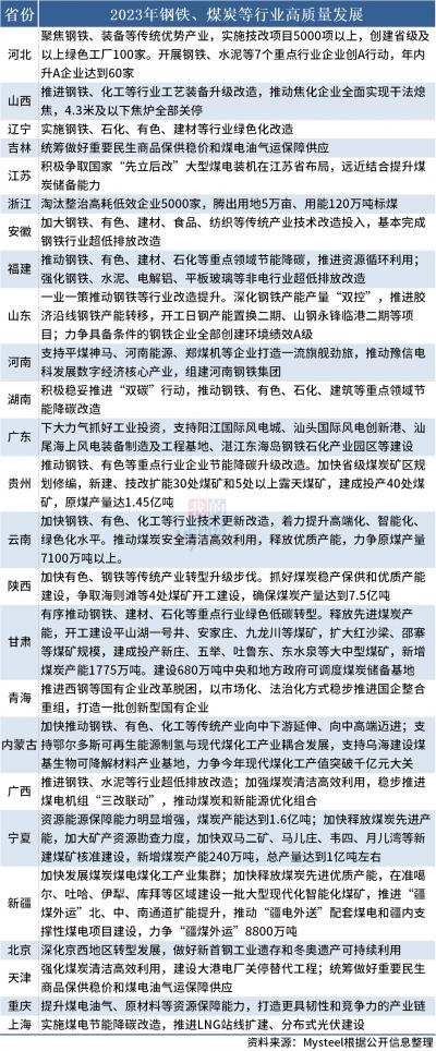 春节前,各省份两会举行,政府工作报告全文陆续公布。其中,有25省份政府工作报告提及钢铁、煤炭等行业发展,具体内容如下: