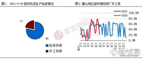 唐山型钢厂开工率:5月28日统计34家型钢厂51条生产线开工11条,开工率为21.57%,较上周下降29.41%。