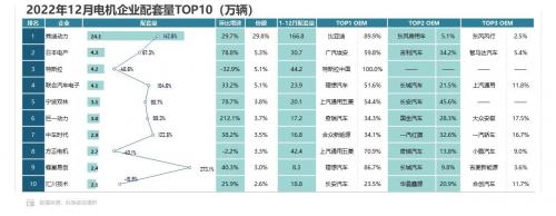 Top10电机配套企业合计配套量超52.8万辆,疫情影响消退市场运行回稳。