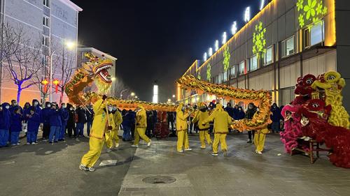 春节前,首钢京唐公司在厂前公寓步行街组织了游园展销活动,让大家感受到了浓浓的年味儿,也为大家采购年货提供了便利。活动中,该公司工会还组织了舞狮、舞龙以及职工参与的各类游戏等助兴活动。(记者杨立文摄)