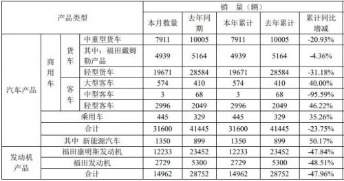 除开商用车,发动机也是福田汽车业务板块的重要组成部分。今年1月份,福田销售发动机14962台,同比下降47.96%。