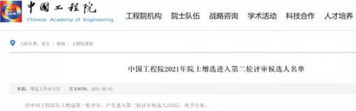 6月2日,中国工程院网站发布“中国工程院2021年院士增选进入第二轮评审候选人名单”。据悉,经中国工程院院士增选第一轮评审,共有235位候选人进入第二轮评审。