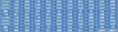 唐山355:本周唐山355热轧带钢价格整体先扬后抑,价格周比上涨,整体成交一般,周中低价有集中采购。截止目前,唐山355带钢市场现货含税主流价格5420元/吨,周比涨150元/吨。目前价格高位回落,但近两日市场稍显稳定,价格维持窄幅波动为主。目前唐山资源南下受阻,集港资源减少,华东无锡地区多以消化本地中天资源为主,或以薄卷代替,唐山带钢价格缺乏优势。本周唐山瑞丰355轧线产能置换,不再报价,市场缺乏指导厂家,近期市场多关注355市场成交价。加之后期金马钢铁产能退出计划,唐山资源逐步减少,供应面有所支撑。下周华东地区进入梅雨季,加之目前高温天气,需求或逐步萎缩。多空交织因素影响,下周带钢市场或供需博弈,以窄幅震荡为主。